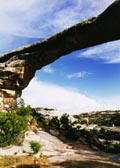 The bare rock overhangs here sheltered dozens of Anasazi cliff dwellings,