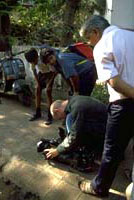 From the script we then plan the visual half of the story, working with our gifted photographers to acquire evocative images that will complement our rich script. Depending on the project, we work in digital video, analog video, 16mm film, and frequently 35mm photographs. We love the striking visual compositions made possible by the emerging widescreen (16:9) video format. As with our long-form interviews, we plan for and shoot a wide range of scenes and occasions, often covering several hours of tape. To our minds, shooting a documentary-like film should be a process of discovery. We frequently come upon unexpected "delights" that add depth, interest, and dimension to the production. We like to be flexible in our thinking as we gather audio and visual material for a production, in order to take advantage of the gems that surface along the way.